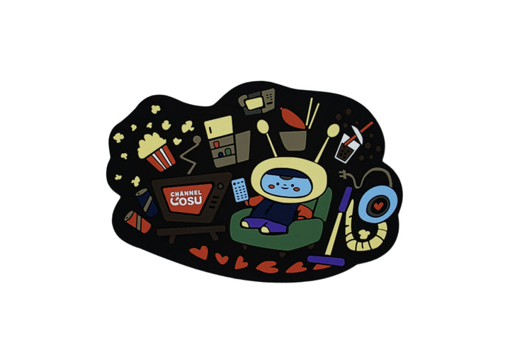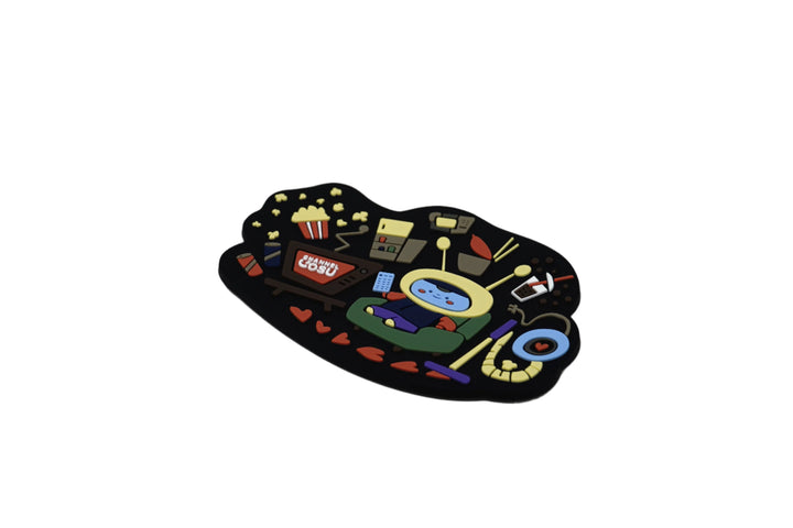 This vibrant magnet features our beloved Napa surrounded by a delightful clutter of snacks and appliances during his night in. The design boasts a unique 3D effect, created with three layers of durable rubber, giving the scene a lifelike and tactile feel.